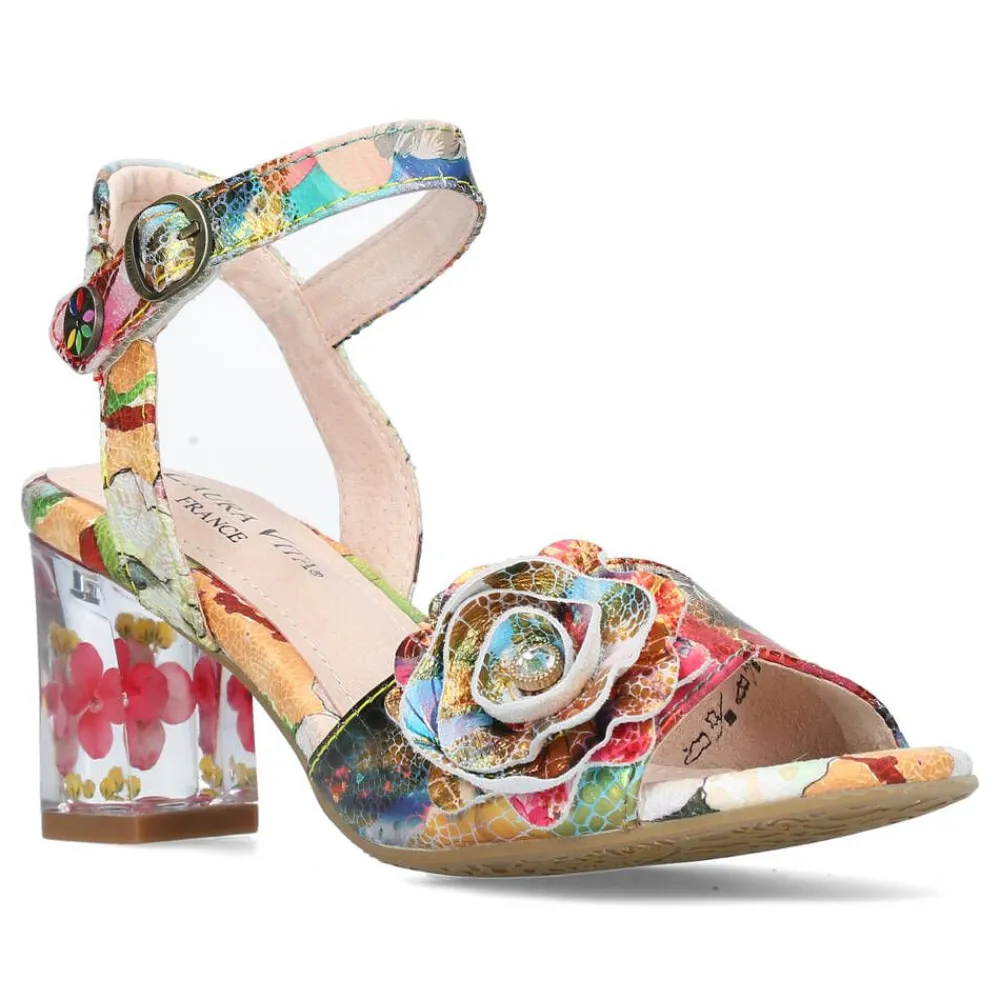 Tunnistettavan värikkäät Laura Vita sandaletit uniikilla muotoilulla. Mallissa on näyttävä kukkakoriste ja mukavan…