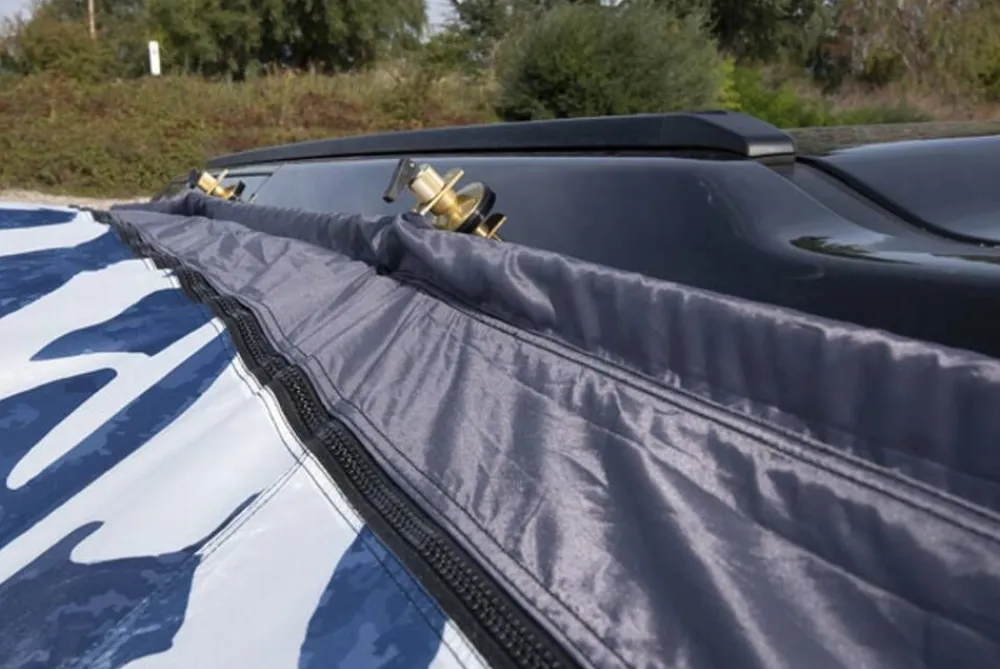 Seinäkiinnike Bent katokselle. 4 kiinnikettä kattokiskoon. Leveys 250 cm. SBS vetoketju. Materiaali 150D polyesteri.Li…