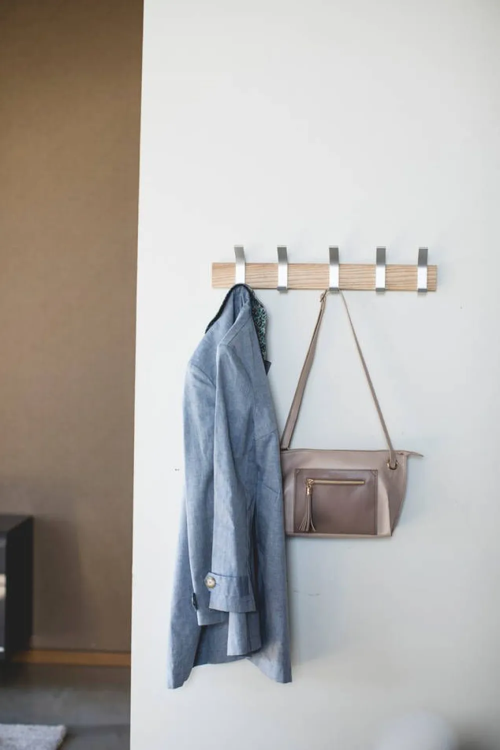 Rin-sarjan seinään kiinnitettävässä naulakossa on kaunis saarnipuinen tausta. Tuotteen erikoisuus on liikuteltavat …