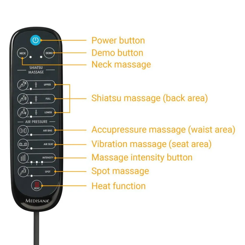 Medisana hierontaistuimen geelinystyrät antavat pehmeän ja luonnollisen tuntuisen hieronnan. Rentouttava shiatsuhieron…