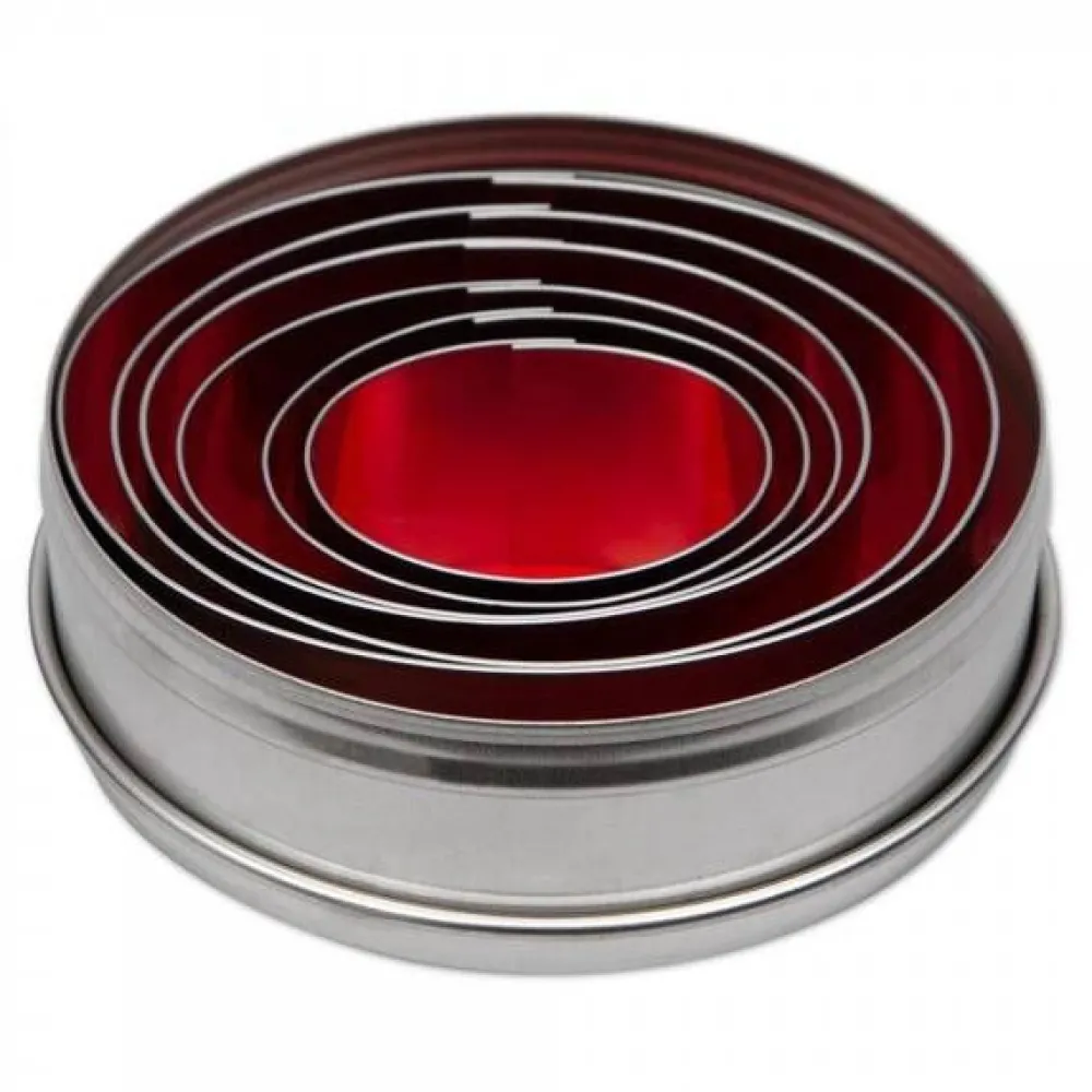 Ovaalinmuotoisia piparimuotteja. Pakkauksessa 6 eri kokoa. Materiaali laadukasta ruostumatonta terästä. Kestää konep…