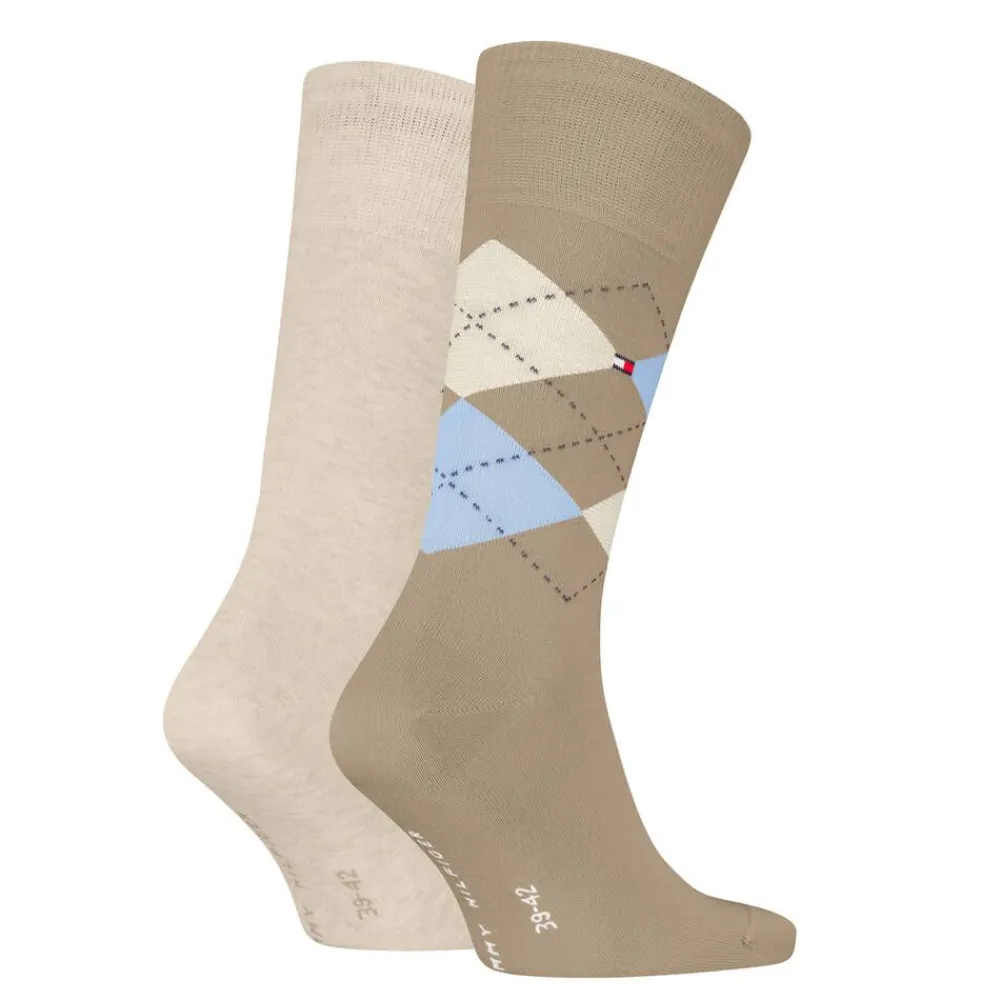 Pitkävartiset sukat, 2 pari samassa paketissa. Toiset yksiväriset ja toiset klassisella ruutukuosilla. Sukissa on vahv…