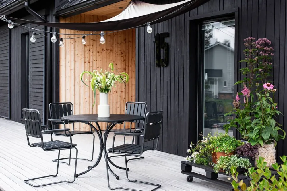 | Materiaali:Pulverimaalattu teräsputkirunko, puuosat mustaksi maalattua mäntyä |