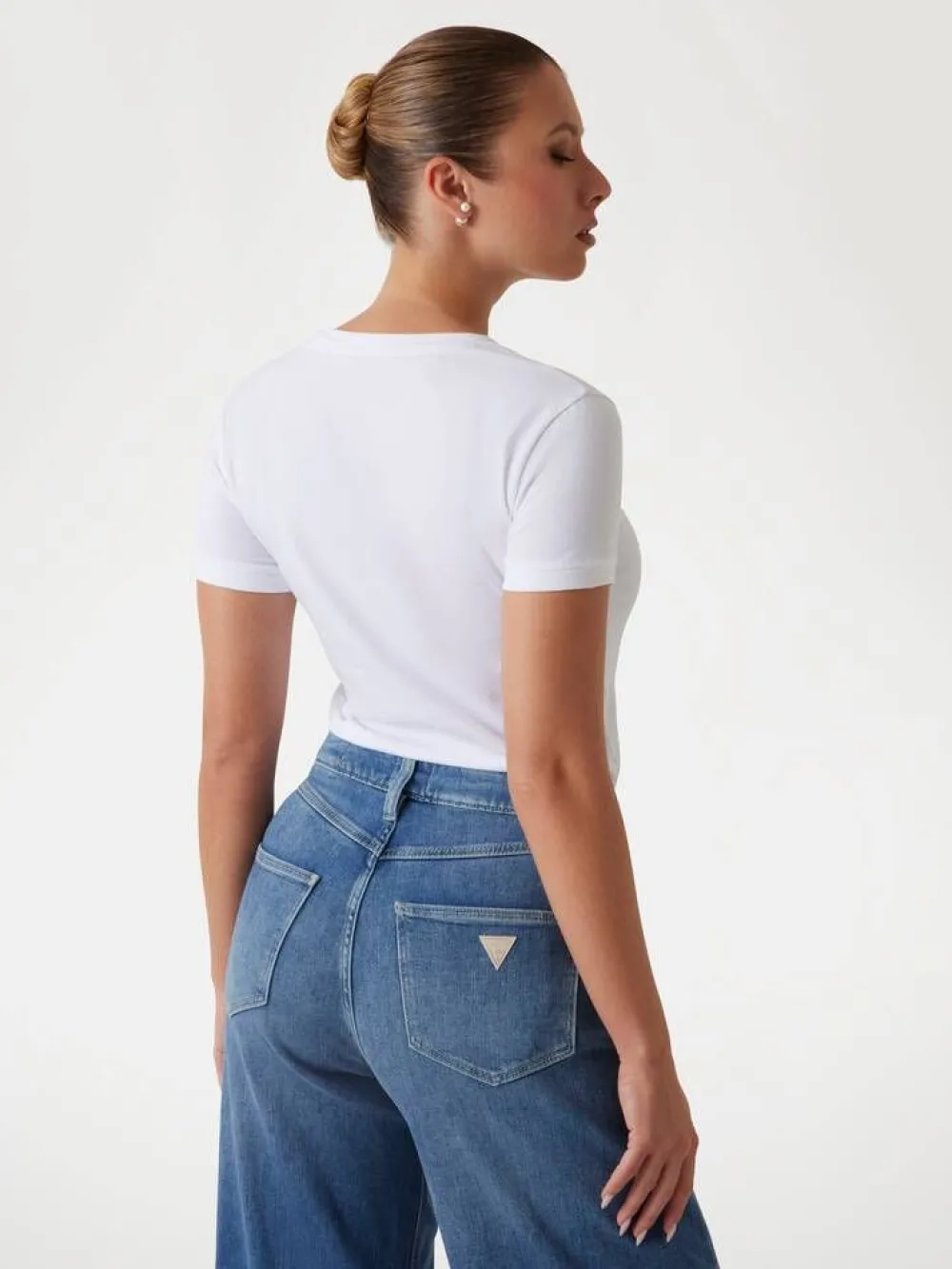 Naisellinen tyköistuva t-paita pyöreällä pääntiellä, rinnassa on pieni Guess-logo.Lisää tietojaMateriaali:95% p…