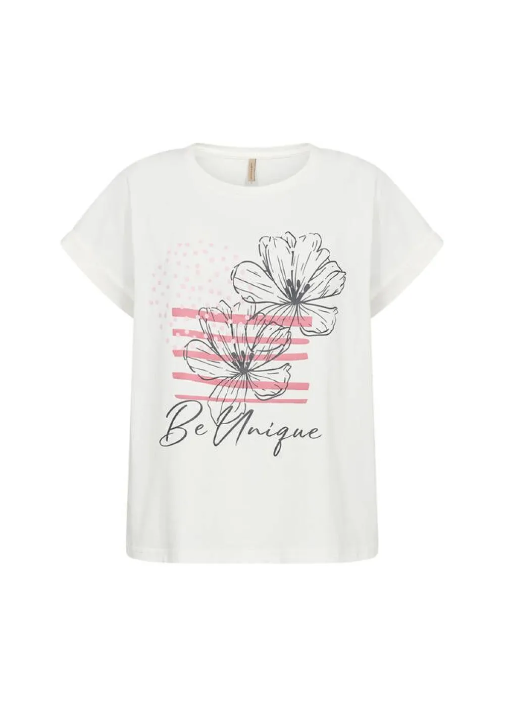 Lyhythihainen trikoopaita, jossa klassinen pyöreä pääntie ja etupuolella näyttävä printti. Miellyttävä ja joust…