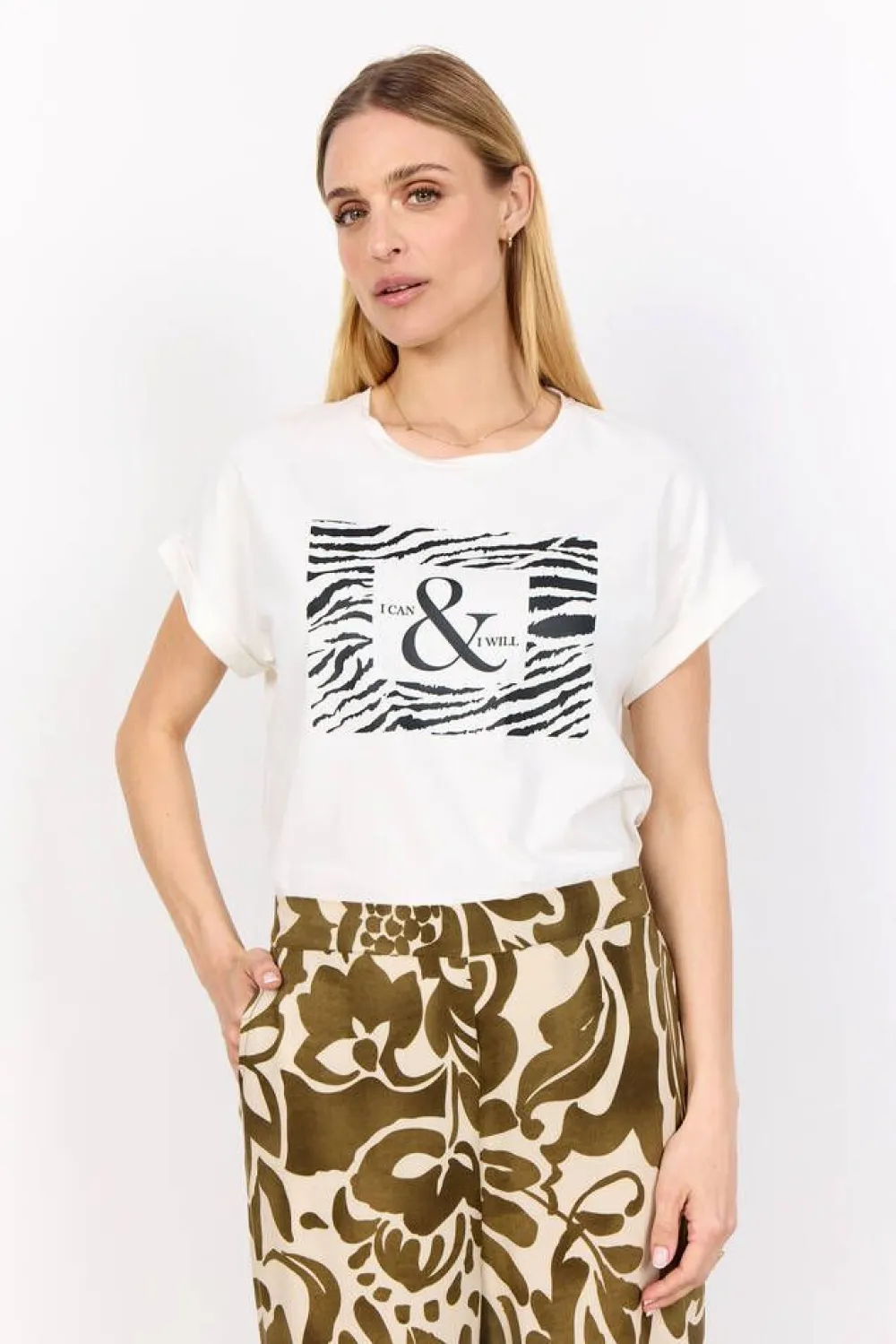 Rennon tyylikäs t-paita pyöreällä pääntiellä ja käännetyillä hihansuilla. Edessä printtikuvio.Lisää tietoja…