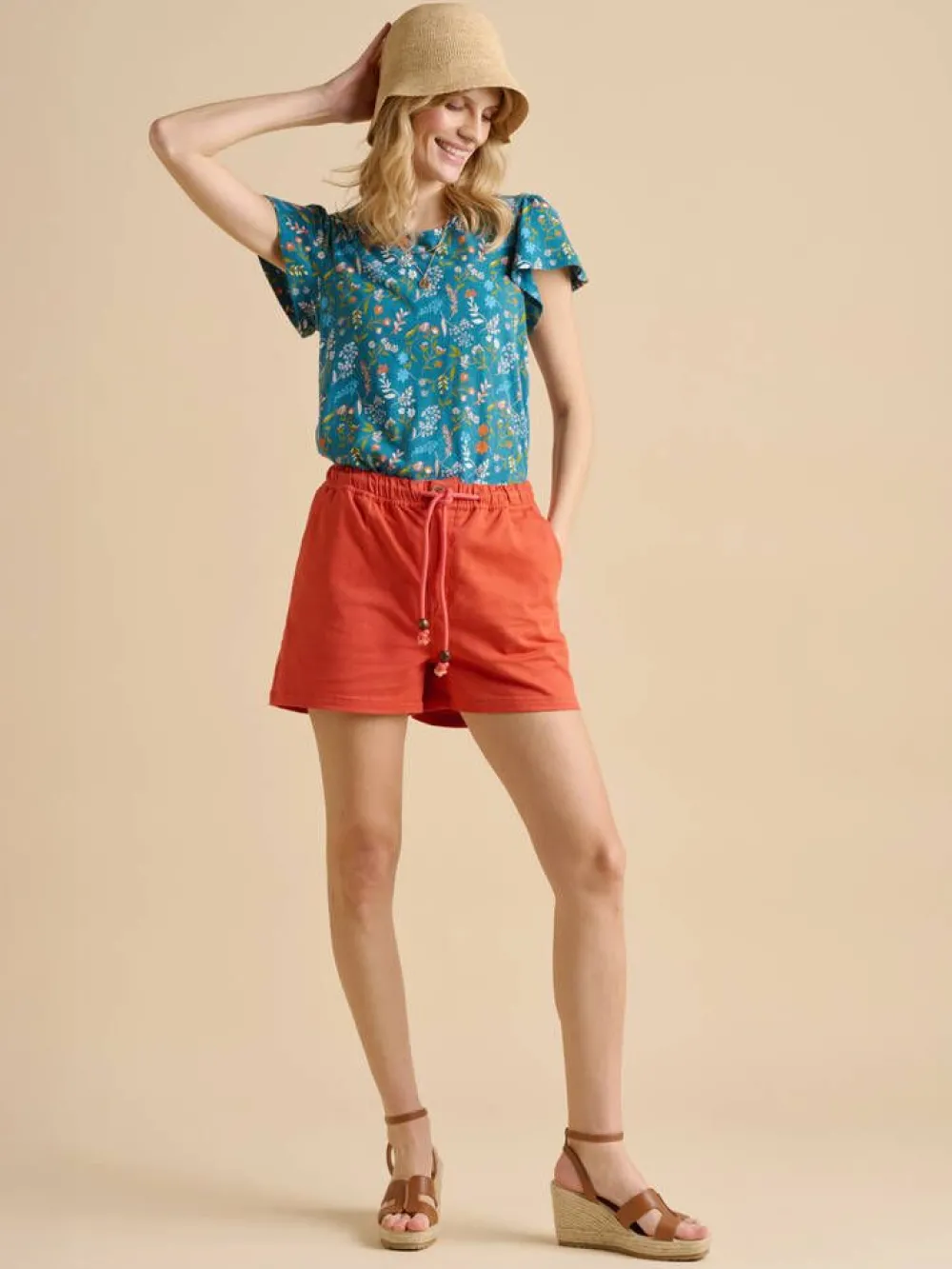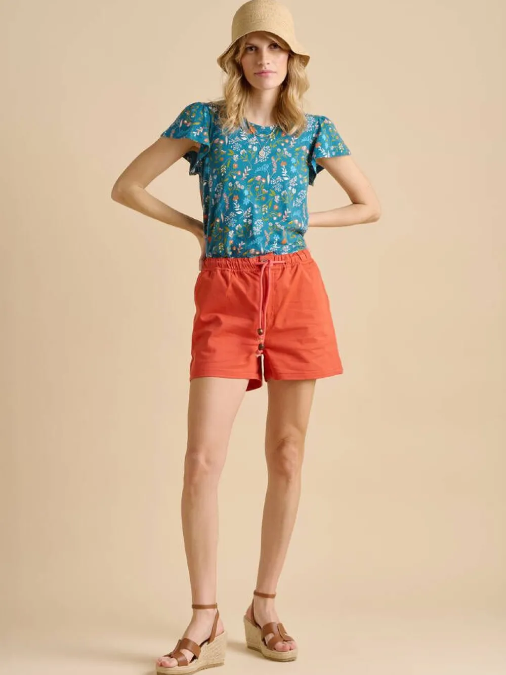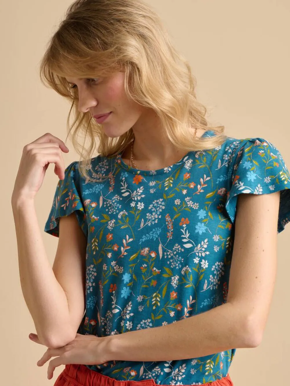 Värikäs kukkakuosillinen t-paita lyhyillä hihoilla, joissa on ilmavaa keveyttä.Lisää tietojaMalli on 170cm pitkä …