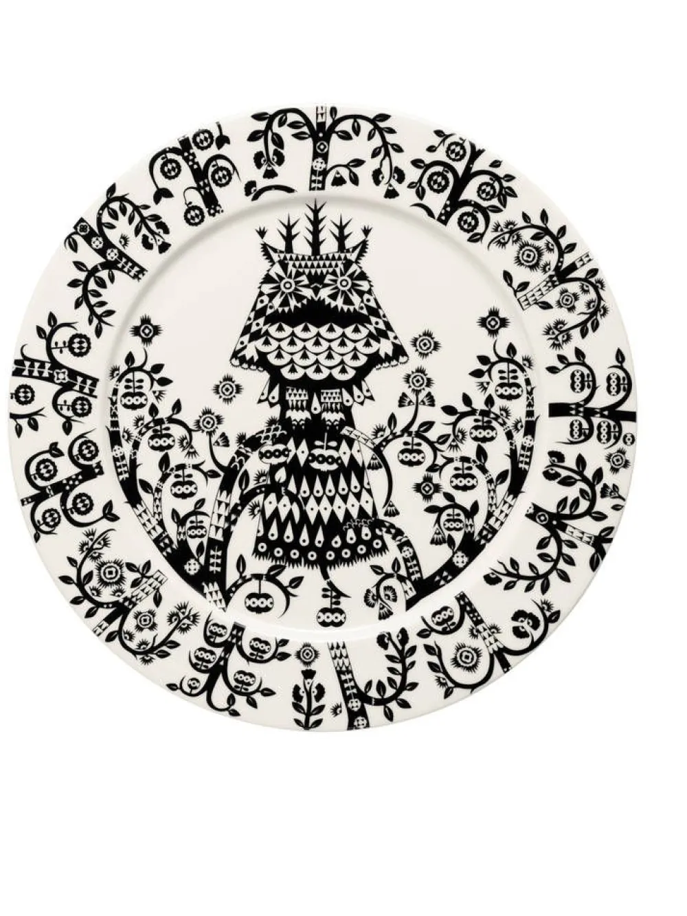 Iittala Taika-lautanen musta (27cm), jonka runsas kuviointi sopii erinomaisesti niin juhlakattauksiin kuin jokapäiväis…