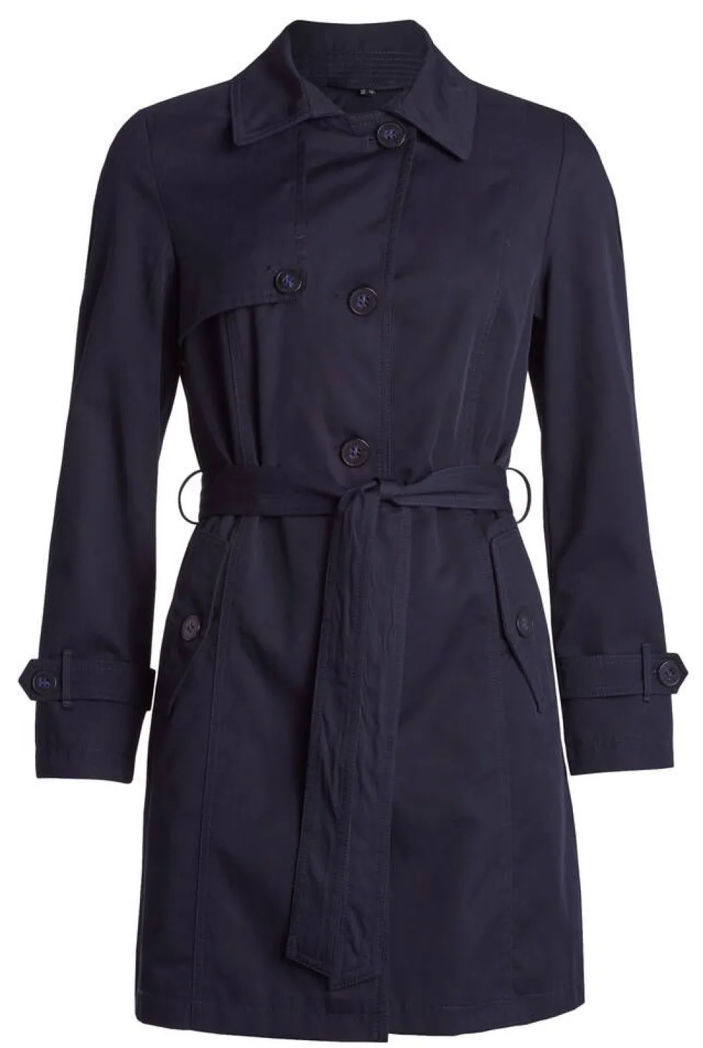 Naisten trenssitakki yksirivinapituksella ja vyötärölle solmittavalla vyöllä. Takissa on etupuolella läppätaskut …