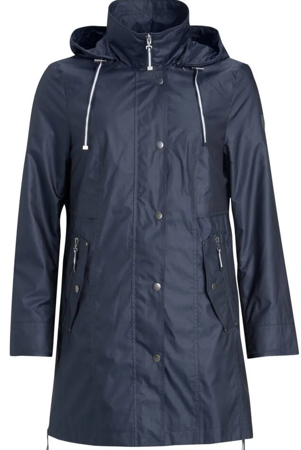 Kevyt parkatakki irrotettaalla hupulla, jossa on kiristysnauhat. Myös vyötäröllä on kiristysnauhat, jotka jää nä…