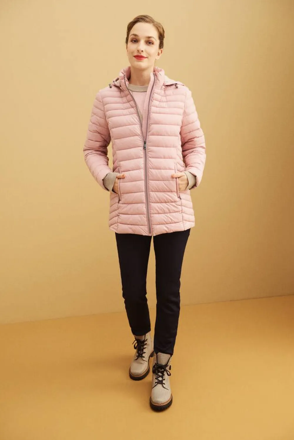 Klassinen kevyttoppatakki untunvankaltaisella polyesteri-vanutäytteellä. Takissa on vetoketjulla irrotettava ja kirist…