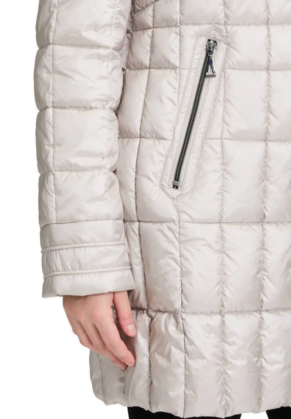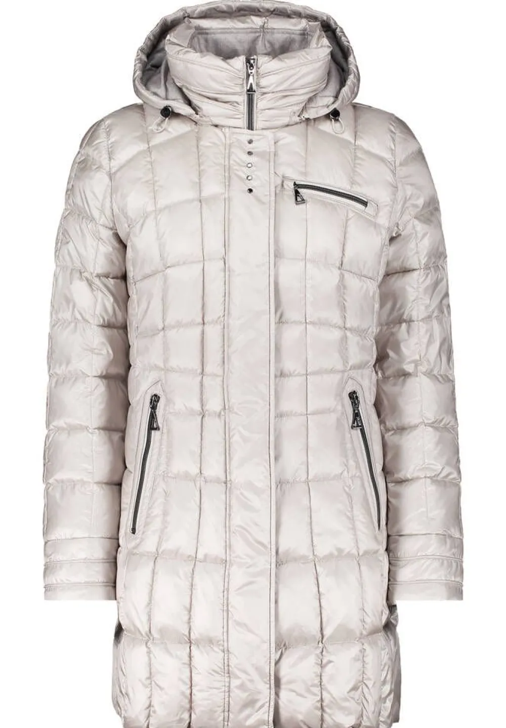 Tyylikäs ruututikattu toppatakki vetoketjulla irrotettavalla hupulla ja korkealla kauluksella. Edessä on vetoketjullis…