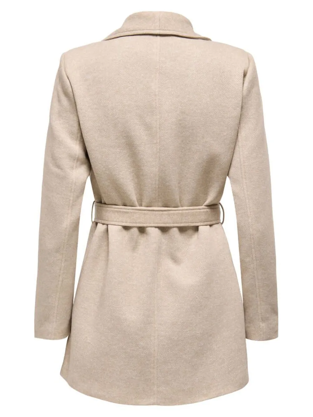 Ajattoman tyylikäs meleerattu takki laakeilla kauluksilla ja solmittavalla vyöllä.Lisää tietojaMateriaali:55% kierr…