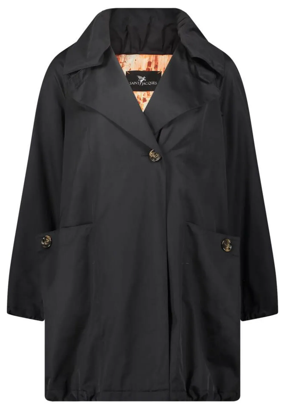 Väljä, pussimainen takki isoilla kauluksilla. Takissa on isot, nappikoristeiset taskut.Lisää tietojaKeskitakapituus:…