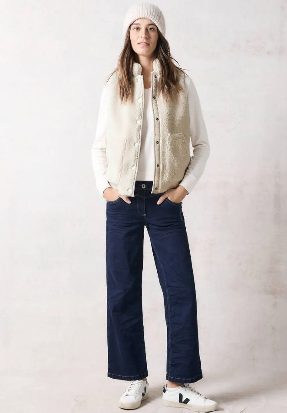 Vaalea teddyliivi nepparikiinnityksellä. Edessä on käytännölliset taskut.Lisää tietojaKeskitakapituus: 65 cmKiinn…