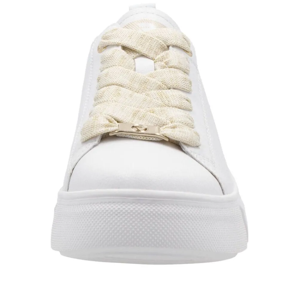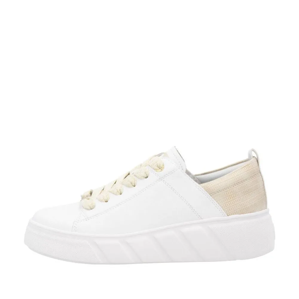 Tyylikkäät tennarit, joissa nahka- ja synteettinen päällinen raikkaalla ilmeellä. Tekstiilivuori ja irrotettava, pe…