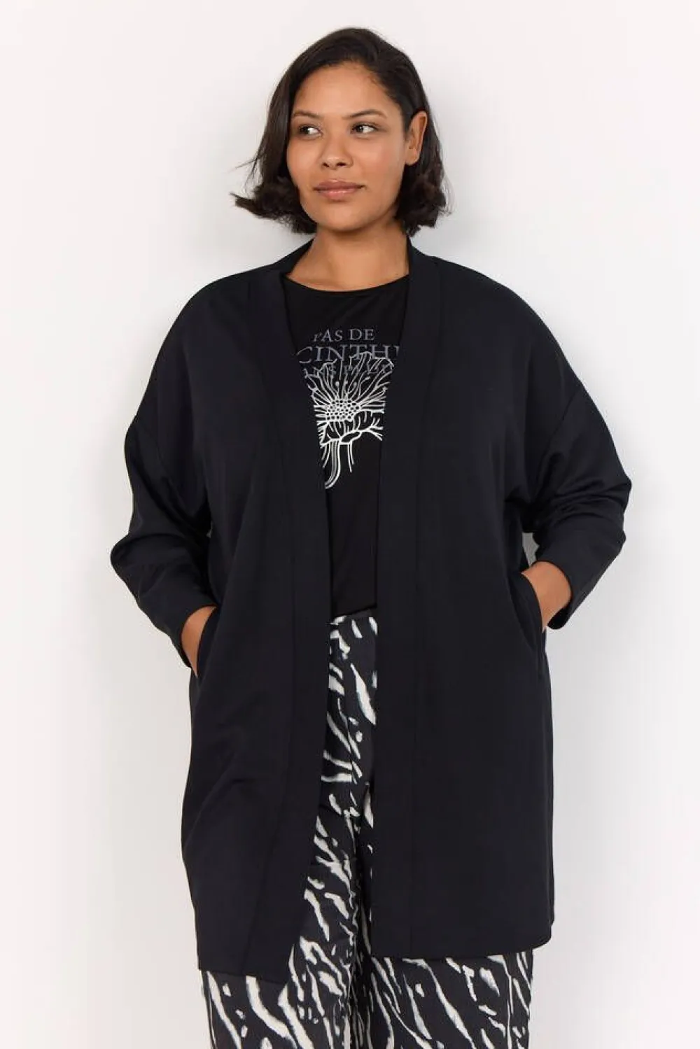 Ajaton pitkä ja avoin trikoojakku etupuolen sivutaskuilla. Sopii erinomaisesti kerrospukeutumiseen niin arkisten kuin s…