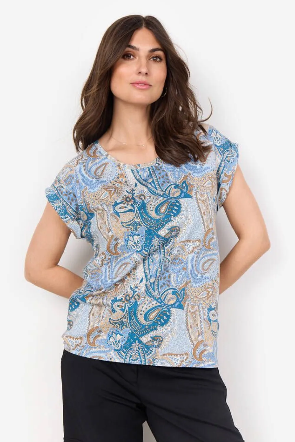 Paisleykuosinen trikoopaita pyöreällä pääntiellä ja lyhyillä hihoilla.Lisää tietojaHoito-ohje:Vesipesu 30Materi…