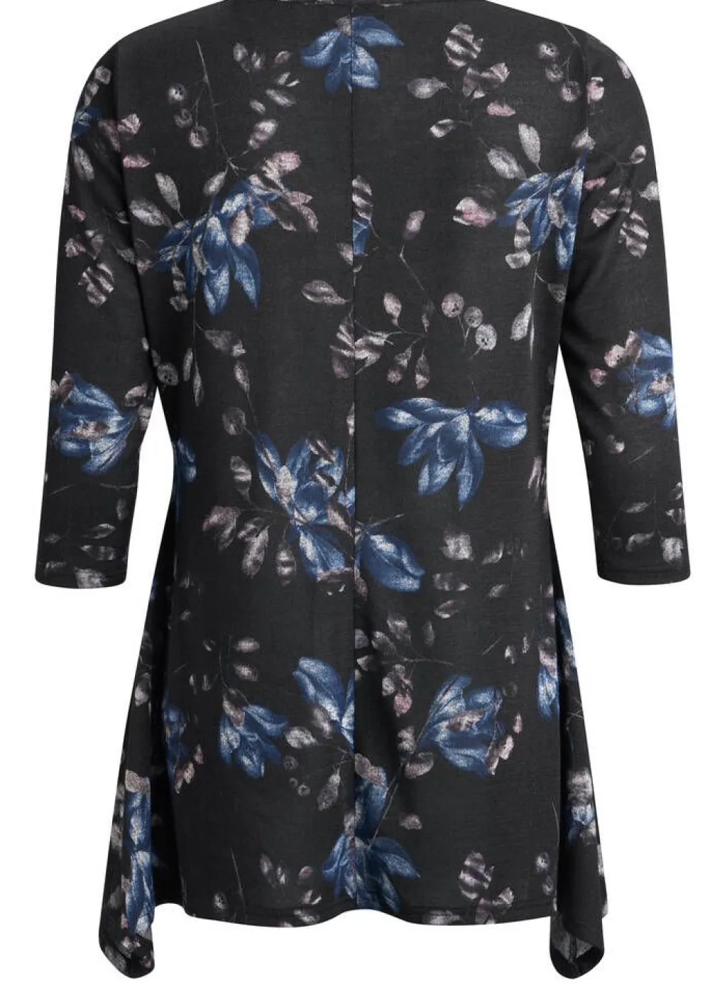 Tummapohjainen kukkakuosillinen pusero pehmeällä pinnalla.Lisää tietojaPlus-mitoitusRinnanympärys (koko 40): 98 cmV…