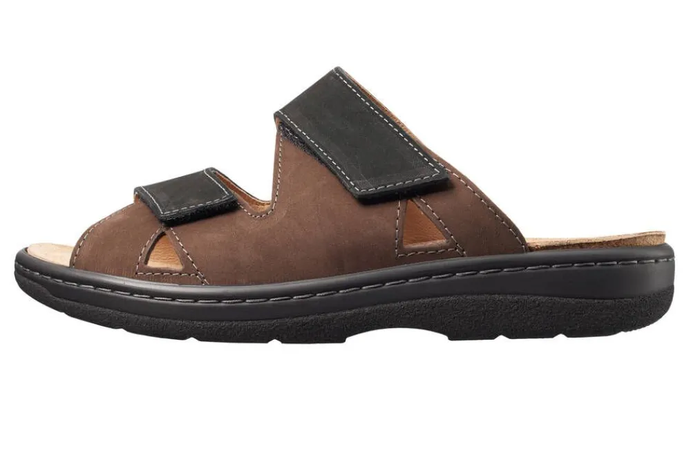 Miesten nupukkipintaiset työsandaalit pitävällä ulkopohjalla.Lisää tietoja