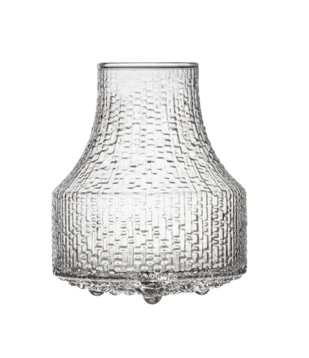 | Ultima Thule – Pohjolan talven ja jään innoittama Ultima Thule on yksi suomalaisen lasimuotoilun ikoneista. Sen orgaaninen pintakuvio tunnistetaan ympäri maailmaa muotoilijamestari Tapio Wirkkalan erehtymättömäksi kädenjäljeksi. Lasi saa elävän pintansa tekniikalla, jossa sula lasimassa hakee muotonsa kaiverretuissa muoteissa. |