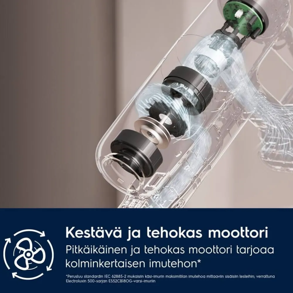 | Tekniset tiedot -Teknologia: Pussiton – Käyttöaika, minimi teho (min): 40 – Käyttöaika, normaali teho (min): 20 – Käyttöaika, max teho (min): 10 – Latausaika (h): 4,5 – Akun kapasiteetti (mAh): 4000 – Akun jännite, tyyppi: 14.4V, Li-ion – Imuteho (W): 95 – Ilmanvirtaus, käsi-imuri (l/s): 12.5 – Ilmanvirtaus, koko imuri (l/s): 11.5 – Äänitaso dB(A): 80S – Suodatustapa: Kaksinkertainen suodatus – Säilytys: Seinäteline – Mitat: 100,8x25x25,9 – Mitat, käsi-imuri: 43.3×8.8×23.5 – Paino (kg): 2.2 – Paino, käsiosa (kg): 1.3 – Tuotenumero (PNC): 900 402 141 – EAN-koodi: 7332543971534 |