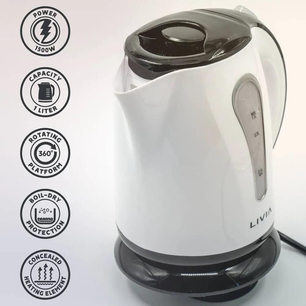 Vedenkeitin 1 l on varustettu automaattisella virrankatkaisulla, irrotettavalla ja pestävällä suodattimella sekä tyh…