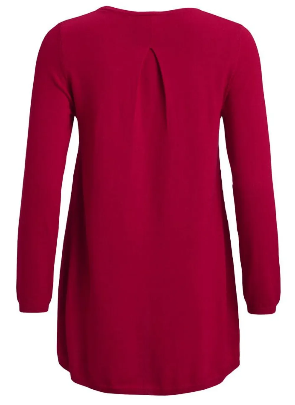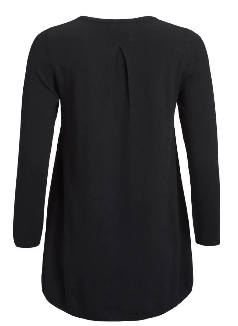 A-linjainen merinovillaneule pyöreällä pääntiellä ja pitkillä hihoilla. Neuleen etuosa on takaosaa lyhyempi.Lisä…