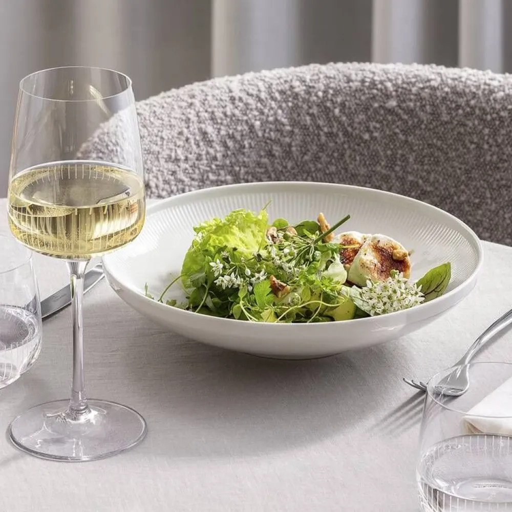 Afina valkoviinilasin malja on muotoiltu korkeaksi ja kapeaksi, joka auttaa säilyttämään viinin herkän aromin. Eleg…