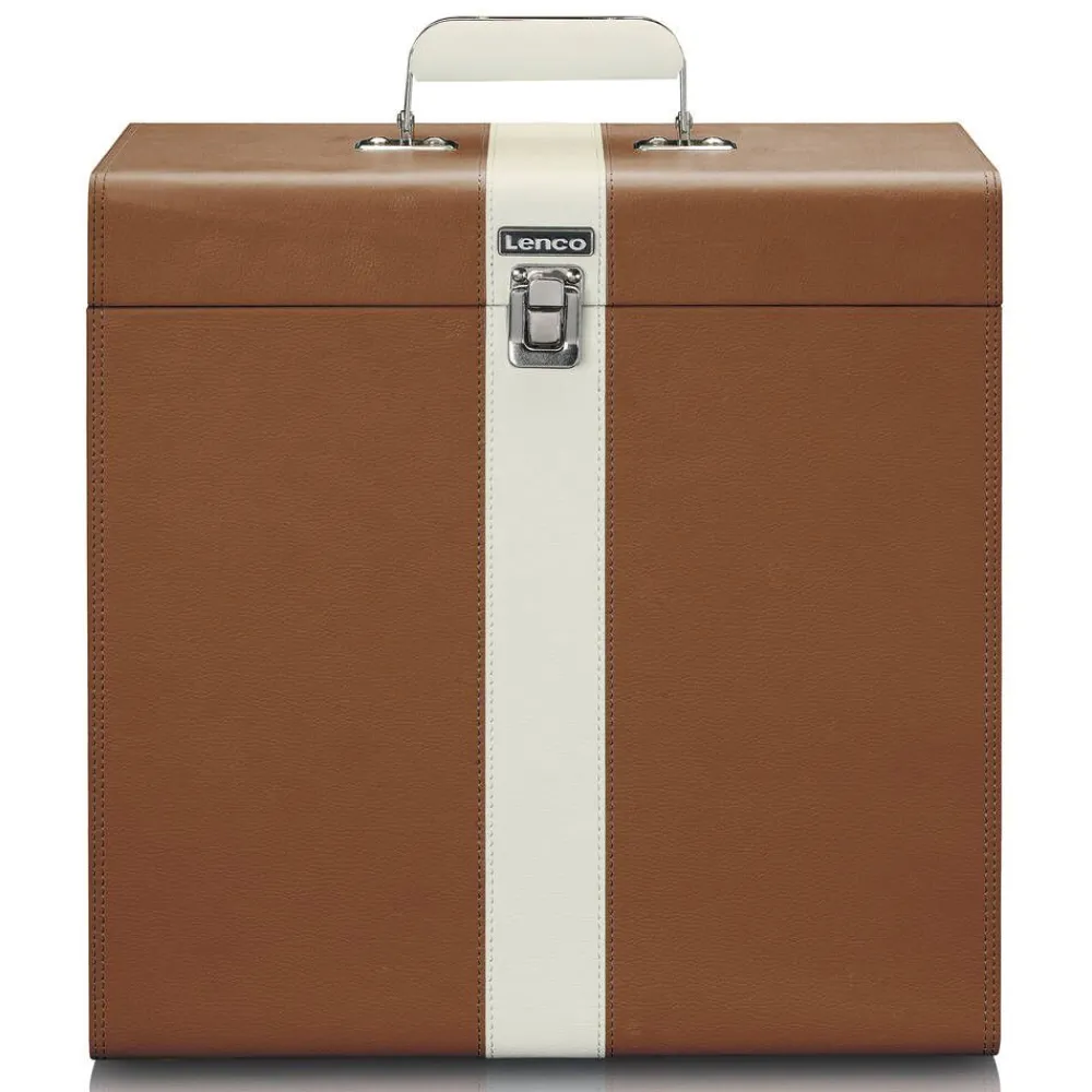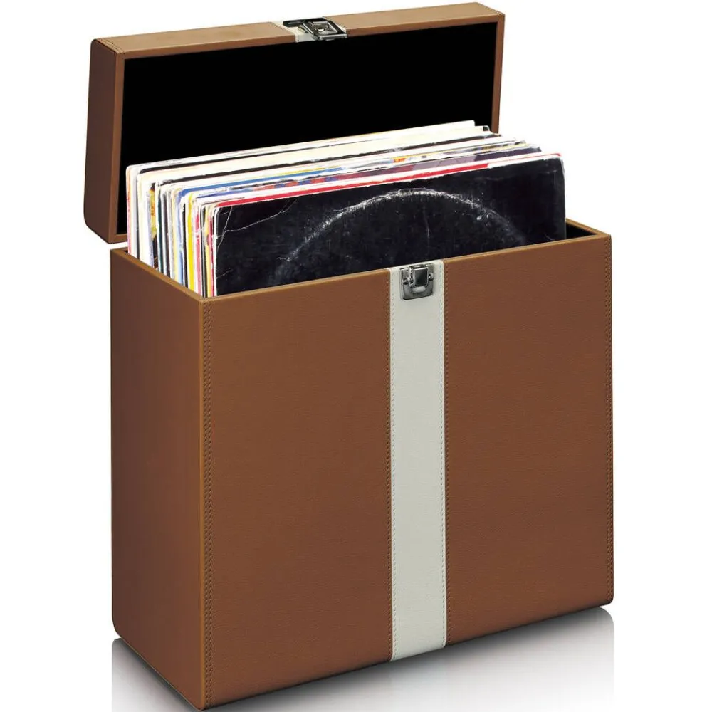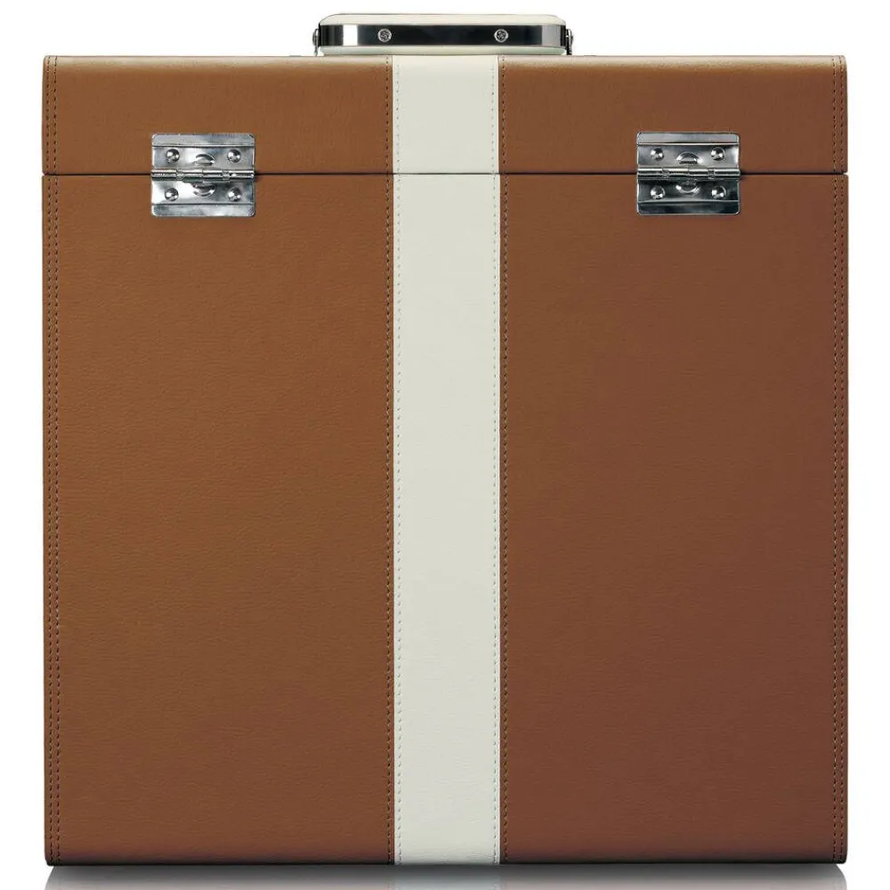 Keinonahkainen vinyylilevyjen säilytys/kuljetuslaukku. Laukun sisäpuoli verhoiltu samettilla. Laukkuun mahtuu max. 30 …