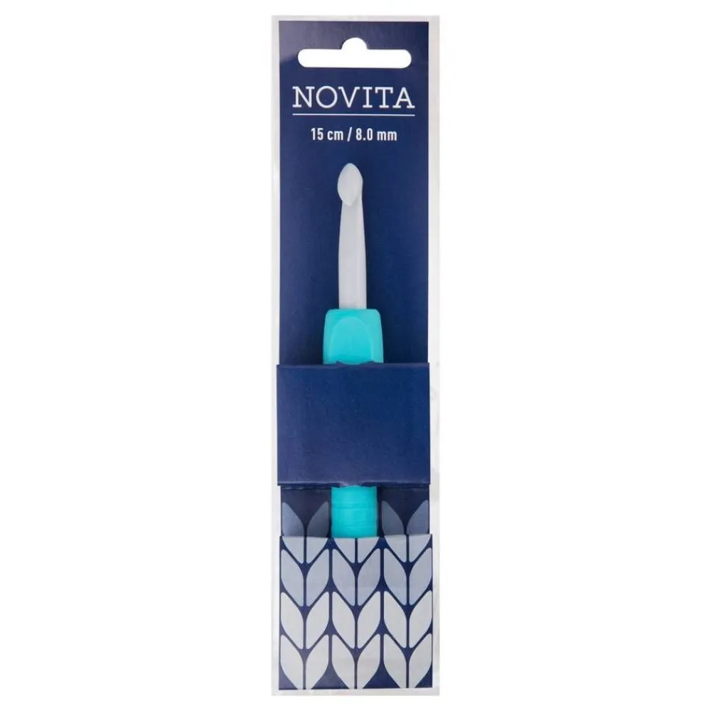 Novitan ergonominen virkkuukoukku on suunniteltu siten, että kädensijasta saa hyvän ja pitävän otteen. Paksumpi muo…