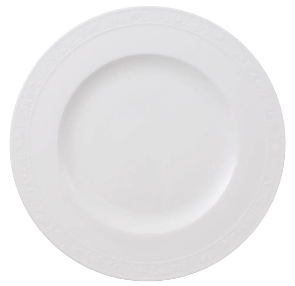White Pearl astiasto on ylellistä, vitivalkoista luuposliinia. Koristeluna lautasosissa kaunis reliefikoristelu. Ohuude…