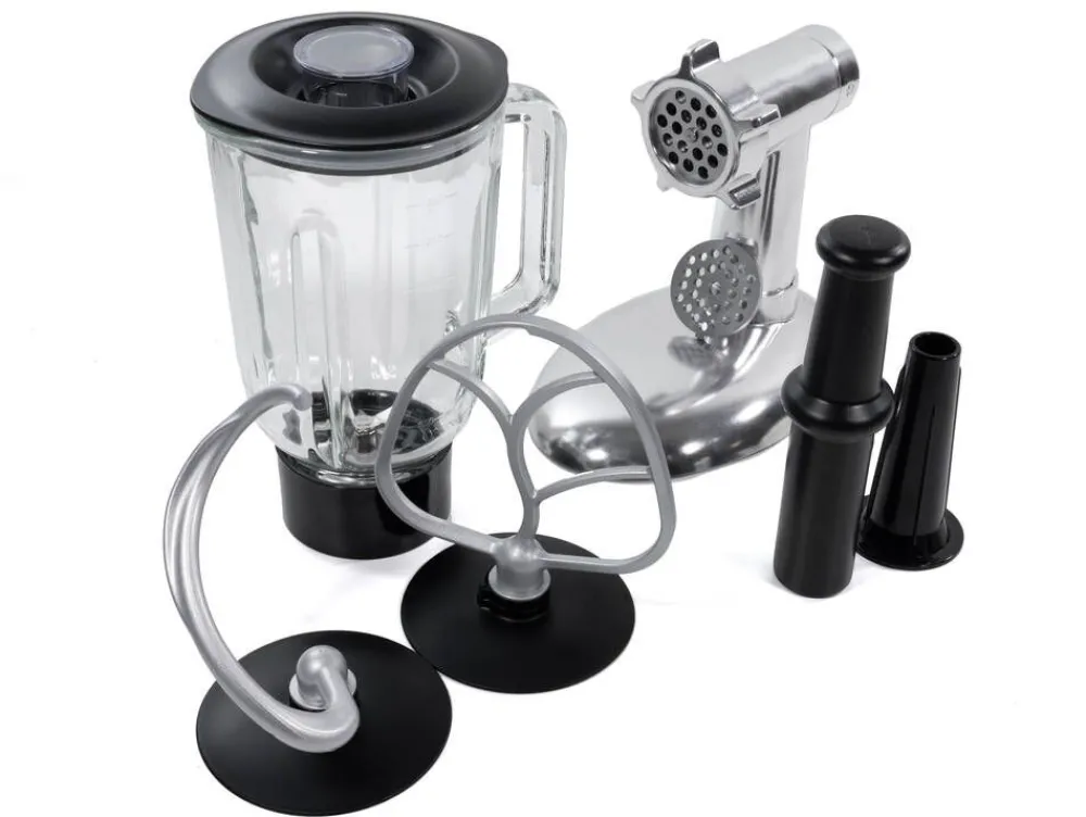 | Sis. taikinakoukku, vatkain, vispilä, lihamylly, tehosekoitin |