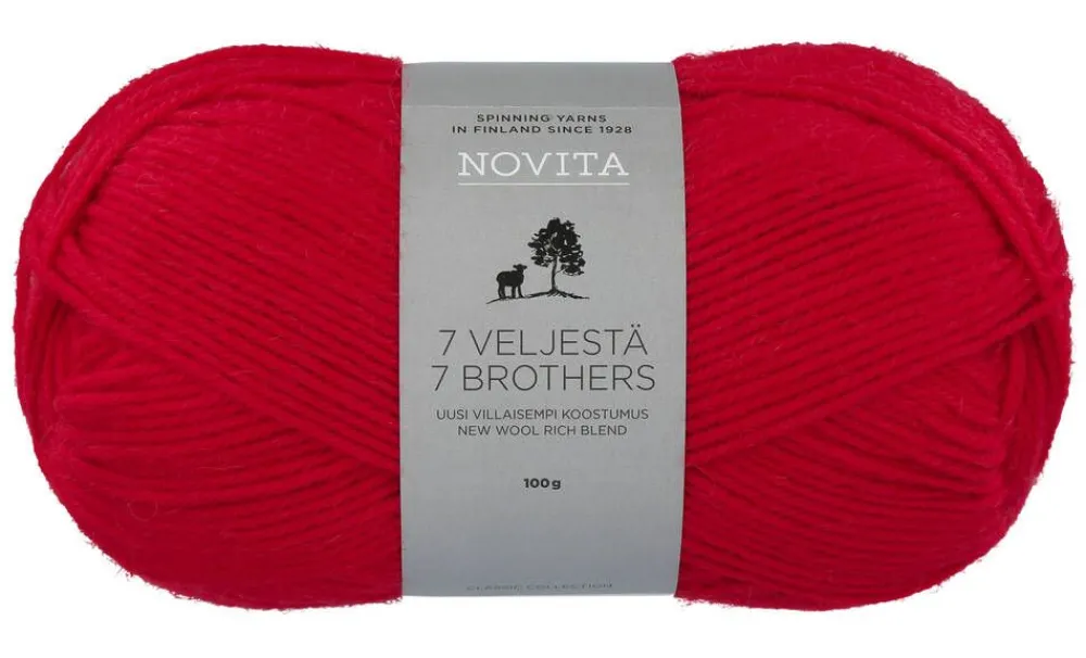 Novita 7 Veljestä on lankaklassikko neuleisiin ja villasukkiin. Puikkosuositus 4, sukkiin 3.5. Yksi kerä riittää koo…