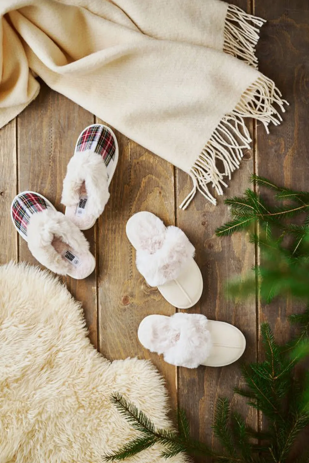 Klassiset pehmoiset aamutossut siistillä tekstiilisellä pinnalla ja muhkealla tekstiilikarvareunuksella ja -sisäpohja…