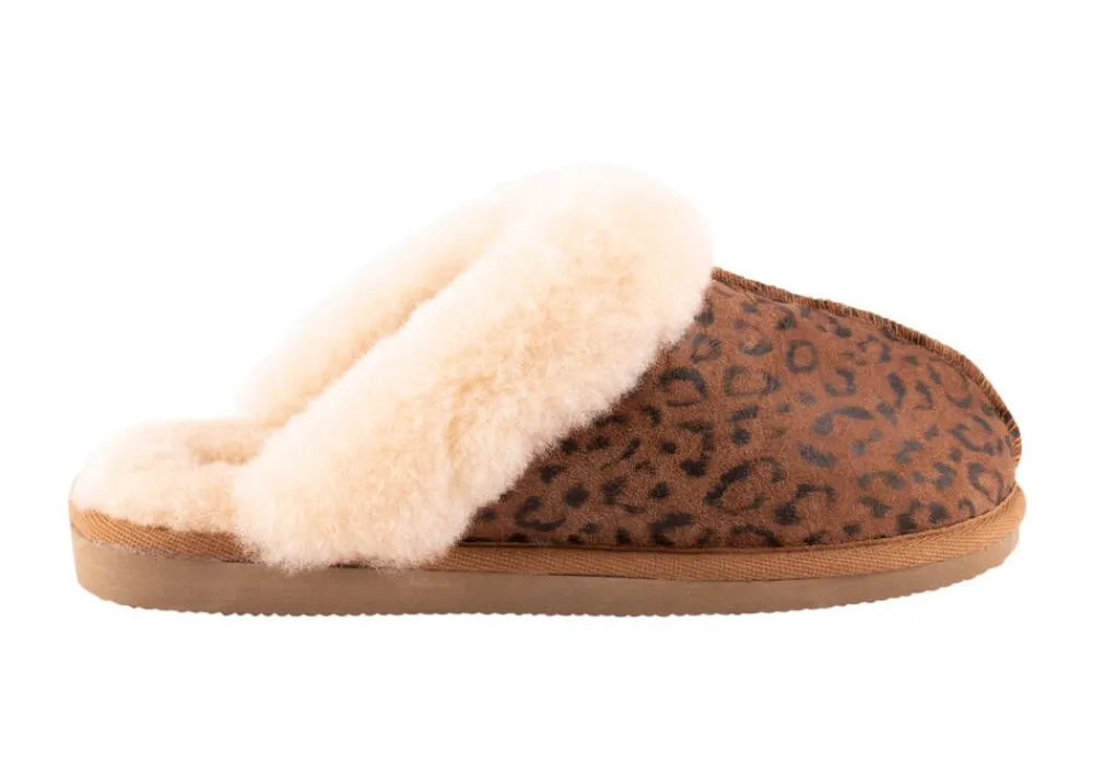 Mokkapintaiset aamutossut lampaanturkisvuorella ja trendikkäällä leopardikuosilla.Lisää tietojaVuorin materiaali: L…