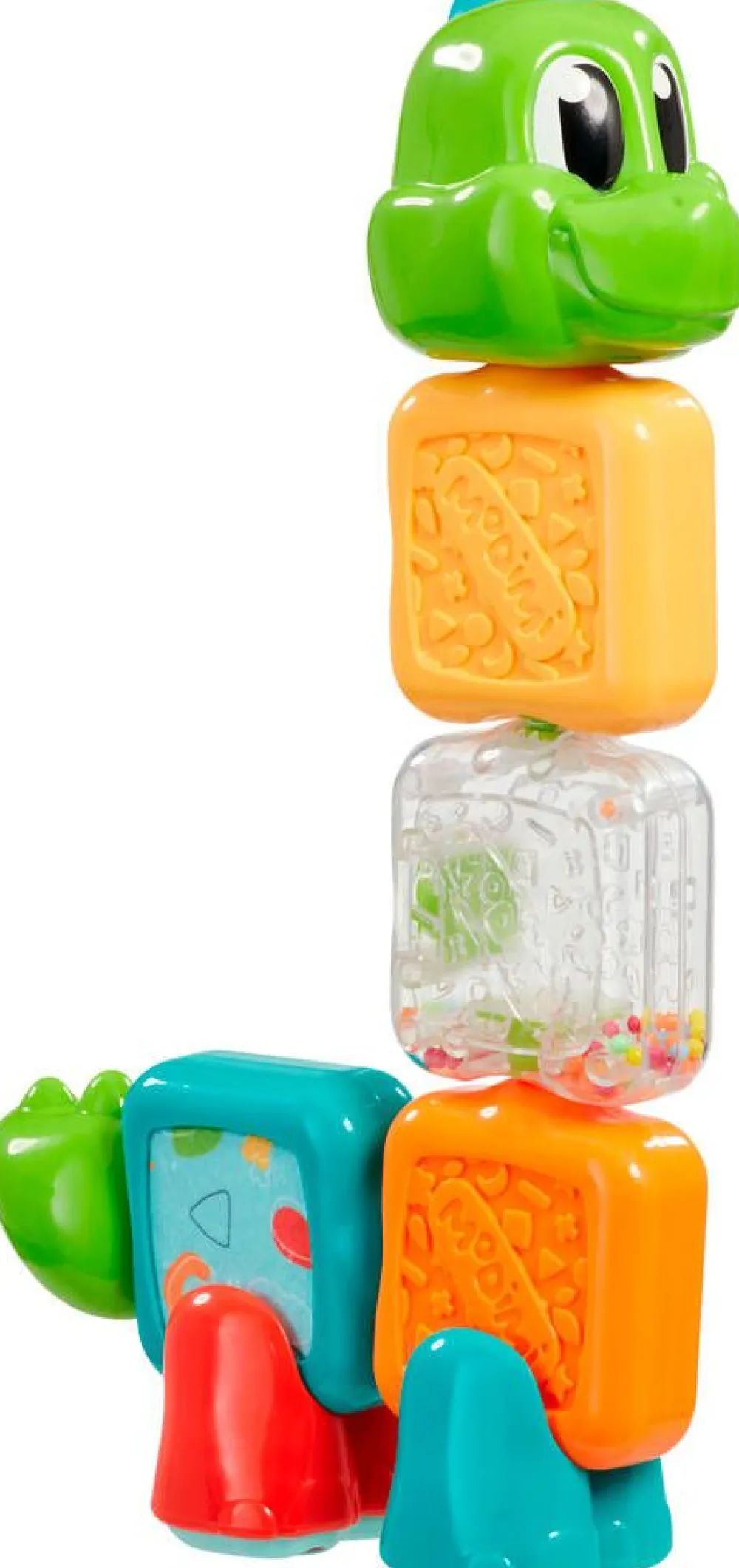 Dinosauruskaverukset kootaan taaperon käteen sopivista paloista. Mukana rapiseva, helisevä, vinkuva ja pehmeä palikka…