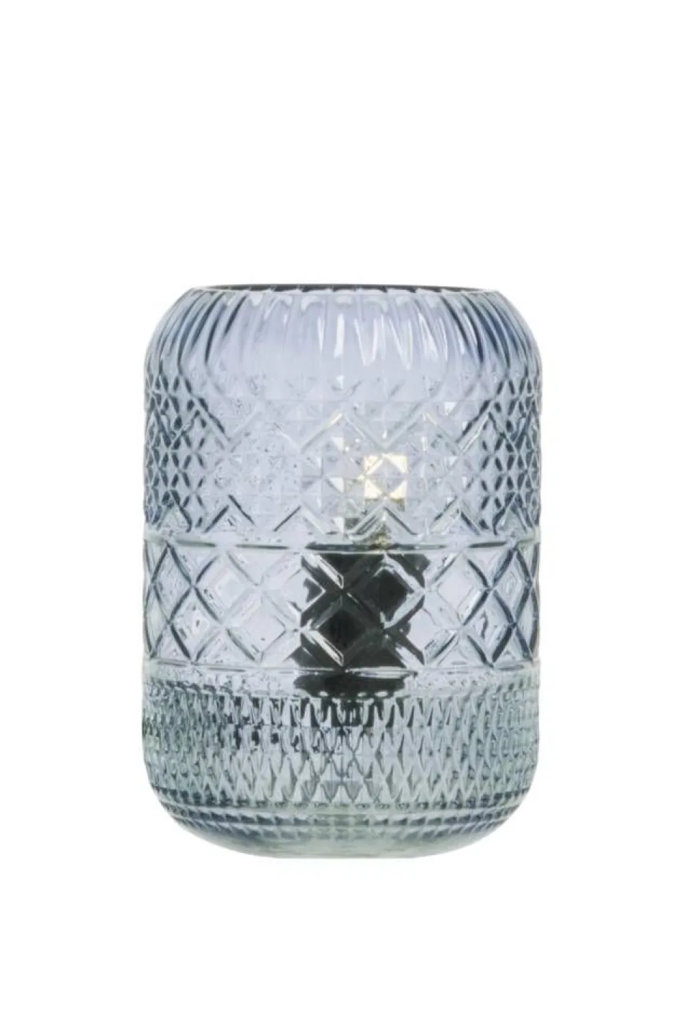 Anetan Minna on kaunis, sinertävän värisestä, kuvioidusta lasista valmistettu pöytävalaisin. Katkaisija liitosjohd…