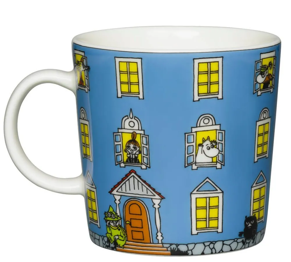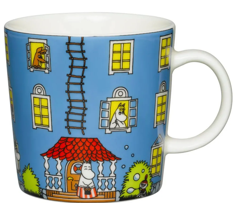 | Muumien 75-vuotisjuhlavuoden kunniaksi Arabia toi myyntiin erikoiserän juhlavuoden leimalla varustettuja klassikkomukeja. Leima on kullanvärinen, siinä lukee Moomin 75 ja sitä kuvittavat lämpimästi toisiaan halaavat Muumipappa, Muumimamma ja Muumipeikko. |