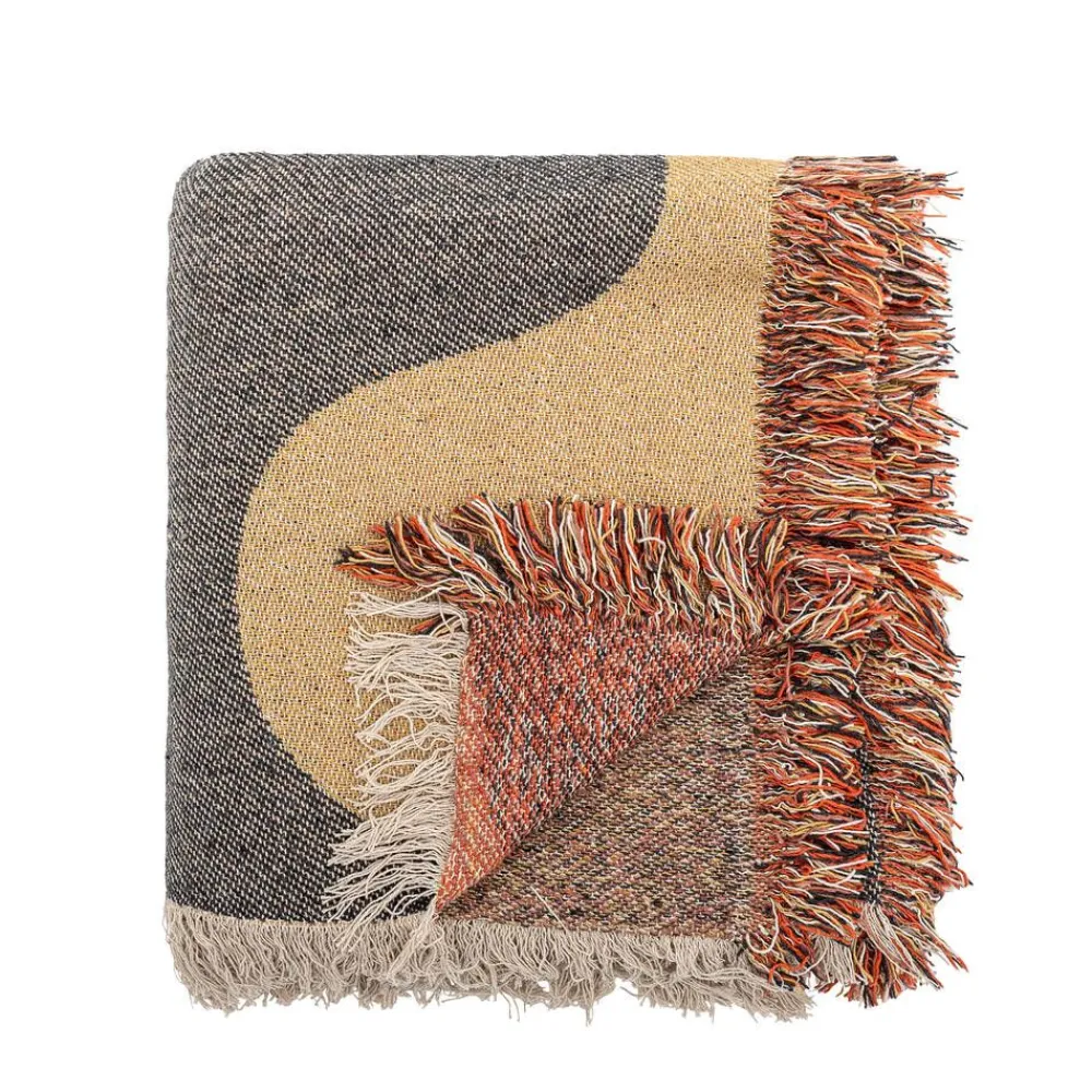 Bloomingvillen Arni-torkkupeitto on kudottu kierrätetystä puuvillasta, ja siinä on raidoitettu kuvio lämpimissä luo…
