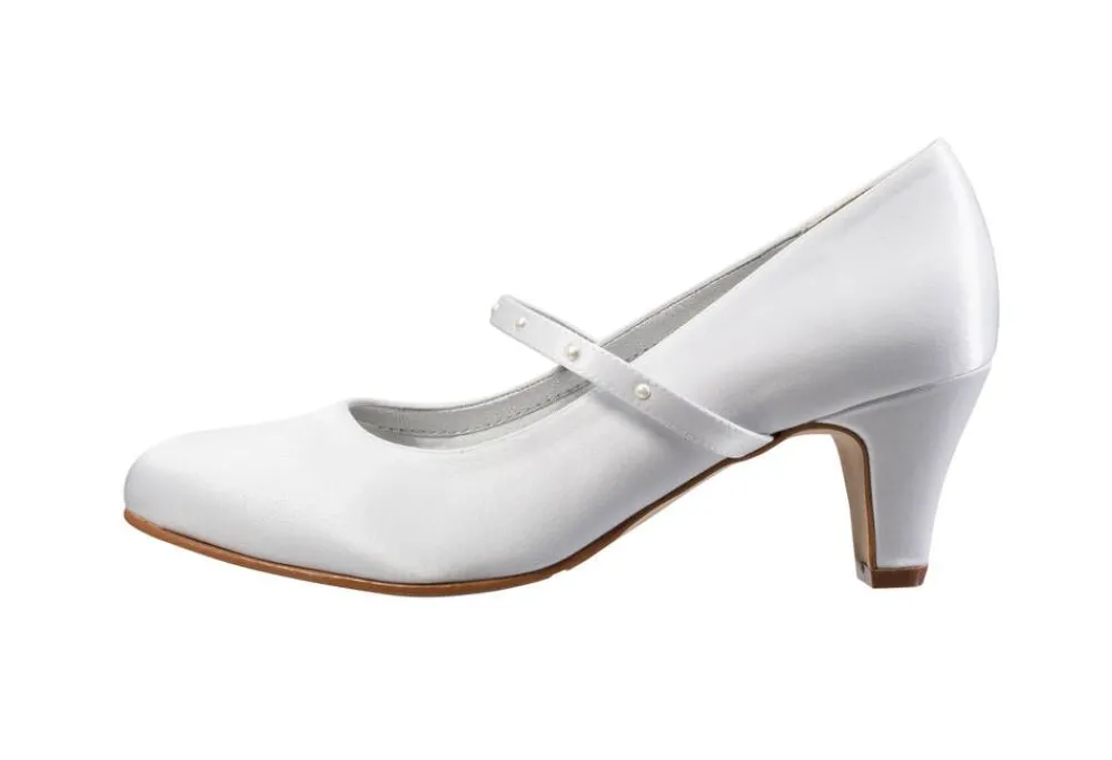 Kauniit satiinipintaiset avokkaat tukevalla korolla. Avokkaissa on kapea remmi, joka on koristeltu helmillä. Pehmustett…