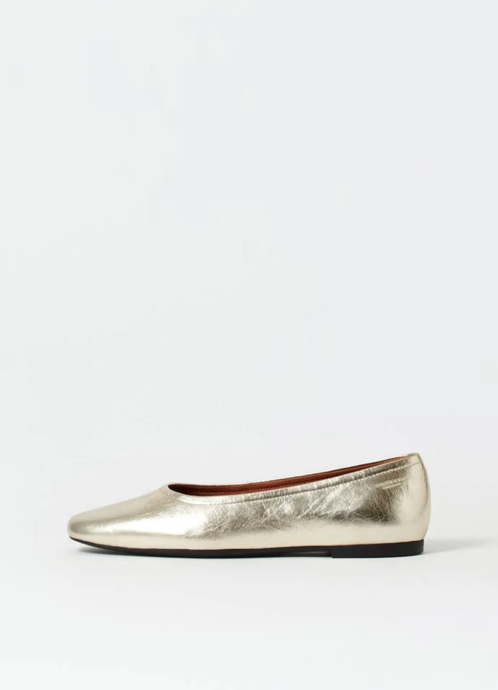 Minimalistiset Jolin-ballerinat on valmistettu kullanvärisestä nahasta. Ballerinoissa on pyöristetyt kärjet, tekstii…