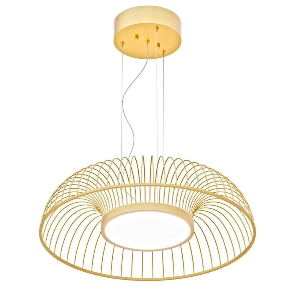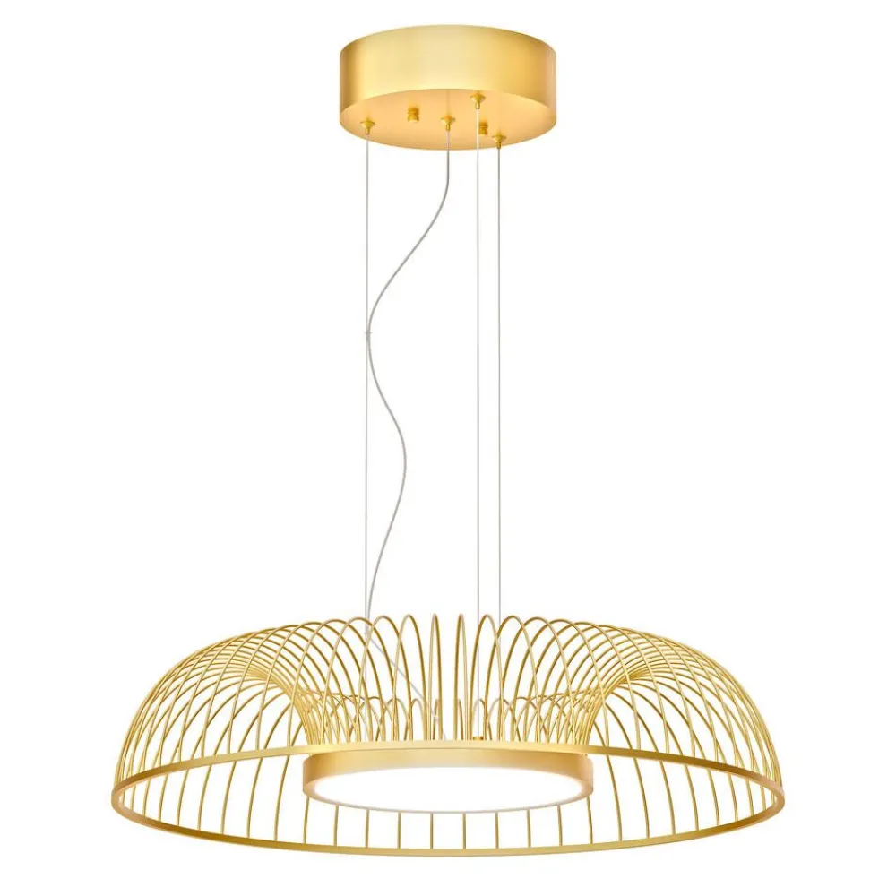 | Avoin messinkinen metallikehikko korostaa valaisimen kolmiulotteista muotoa tehden siitä visuaalisesti kevyen. |