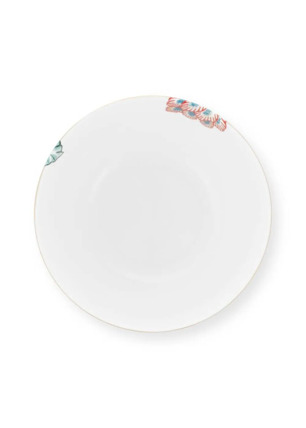 | Pip rakastaa matkojaan kaukoitään. Jokaisella matkallaan hän inspiroituu perinteisen Aasian kulttuurien taiteista ja käsityöläisyydestä. Japanin matkansa jälkeen hän loi Oriental Flower Festival -kokoelman, jossa japanilaiset vaikutteet yhdistyvät aiemman matkansa Intian inspiraatioihin. Kupit, mutta tietysti myös sushiposliini kuten chuzarat, puikot ja zarat, on koristeltu kukka-aiheilla, ja joissakin esineissä on yhdistetty hienostunut Seigaiha-kaunokirjoitus, joka on tyypillistä japanilaista taidetta. Lisäksi jokainen osa on koristeltu kultaisilla yksityiskohdilla, todellinen aarre pöydälläsi. Mutta tietenkään se ei ole vain sushin tai minkä tahansa muun aasialaisen herkun tarjoamiseen: myöhäisillan välipalasi, sipsit tai juustot näyttävät ja maistuvat upeilta missä tahansa Oriental Flower Festival -kappaleessa! |
