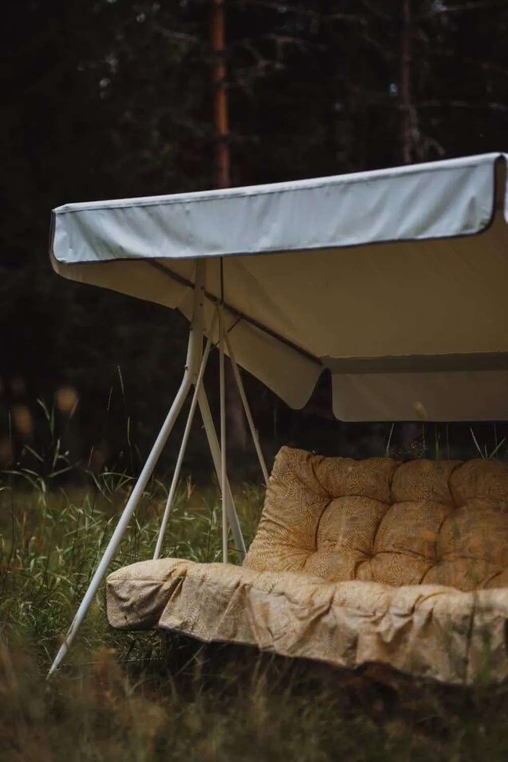 | Materiaali:Pulverimaalattu teräsputkirunko, sinkitty metalliverkko, tekstiili puuvilla-polyesterisekoite, katos pvc-muovia |