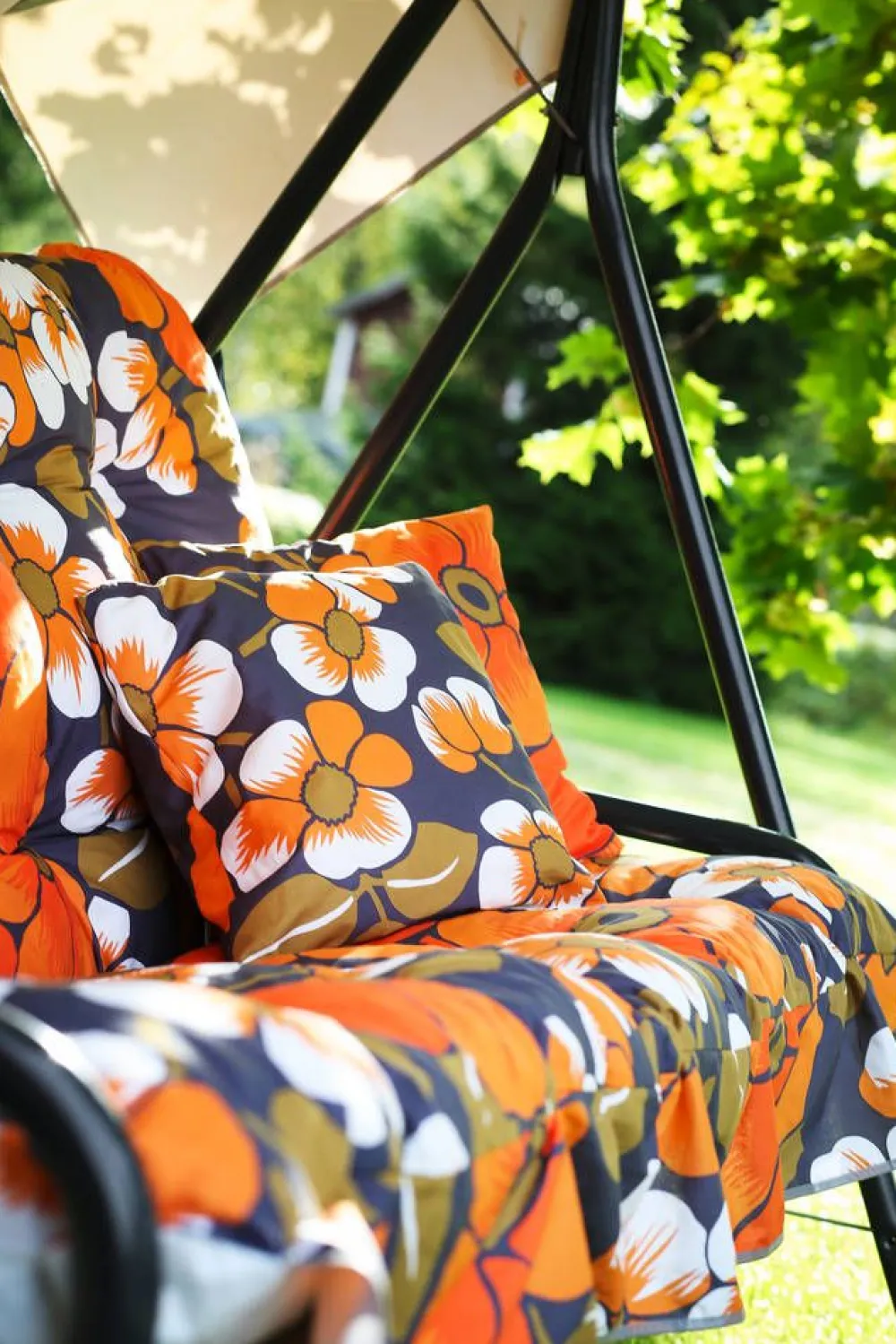 | Materiaali:Runko terästä, sinkitty metalliverkko, Tekstiili: puuvilla-polyesteri sekoite, PVC |