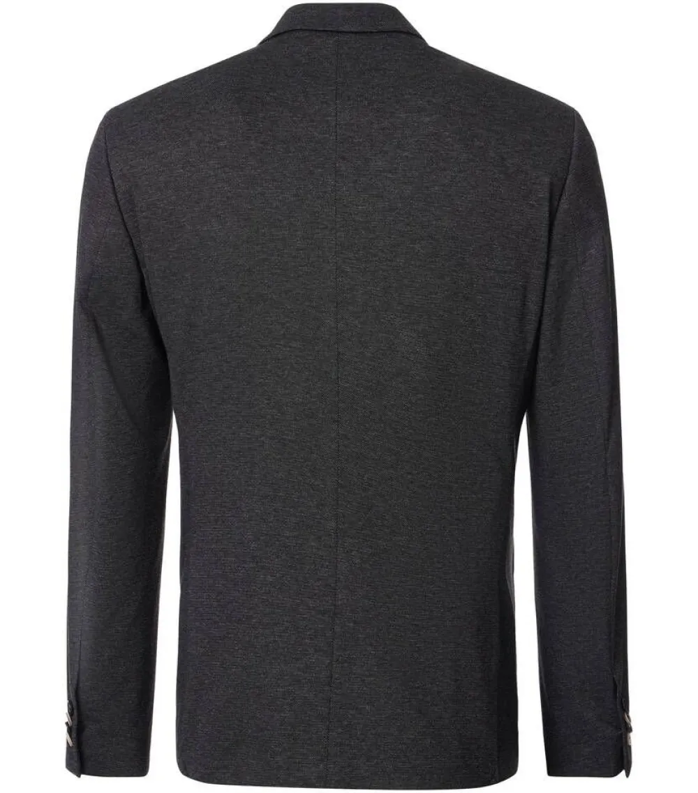 Tyylikäs blazer tilavilla paikkataskuilla ja rintataskulla. Edessä on kaksi nappia ja kauluksessa raidallinen koristen…