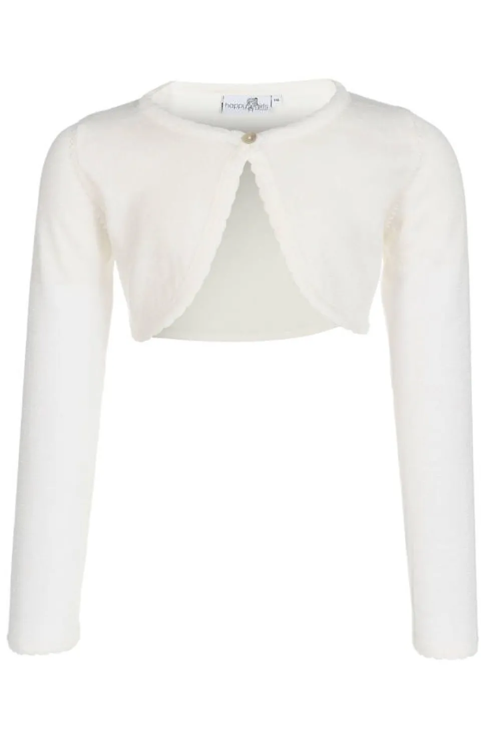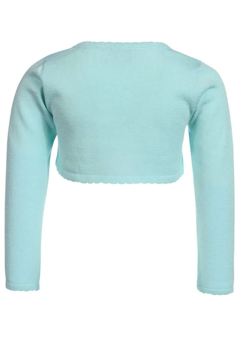 Tyttöjen pitkähihainen neulebolero jossa on kimalletta ja nappikiinnitys. Koon 122 keskitakapituus on 26 cm.Lisää ti…
