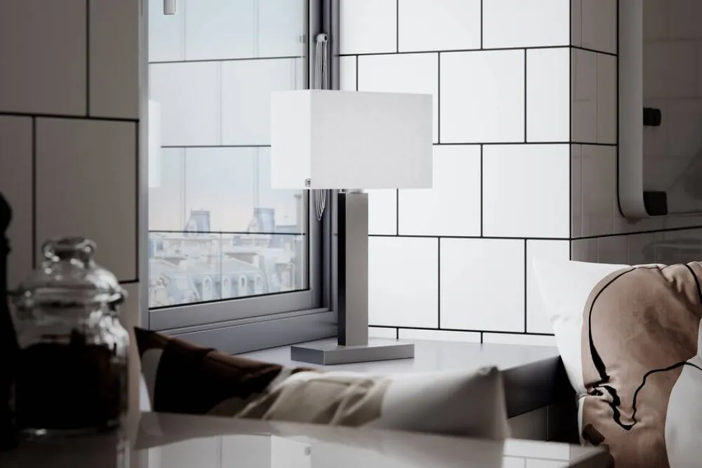 Elegantti Prime-pöytävalaisin yhdistää suoralinjaisen muotoilun ja tukevan metallijalan pehmeään kangasvarjostimee…