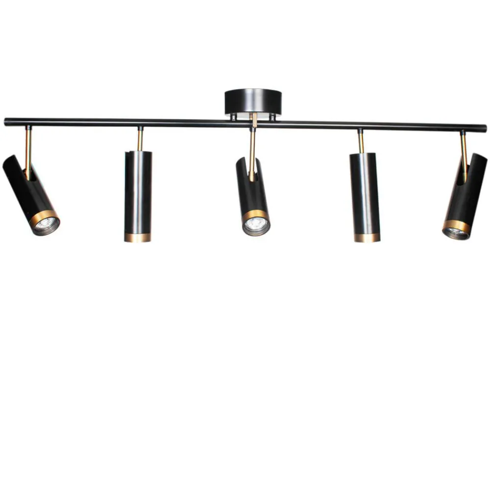 Tyylikäs 5-osainen spottivalaisin reilulla valovoimalla. Jokainen spotti on suunnattavissa, joten valon voi joko levitt…